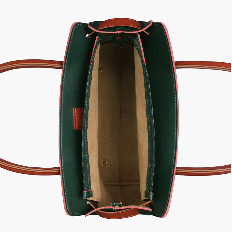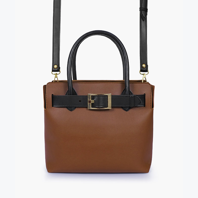 Width: 11 inches Height: 9.5 inches Depth: 5.25 inches One main zipper compartment. One iconic front buckle. Long adjustable strap. Material: Faux leather.