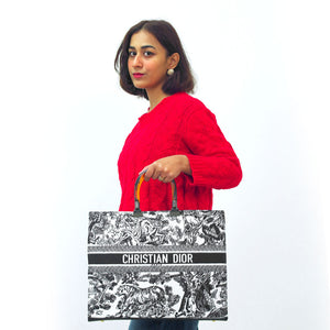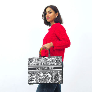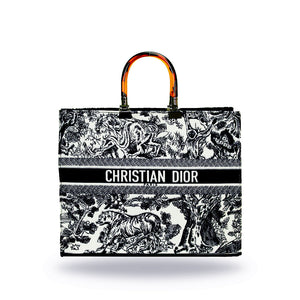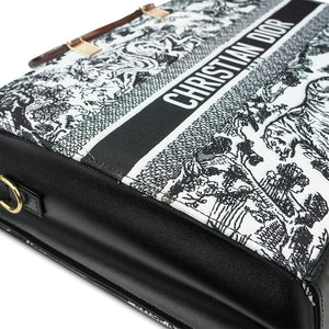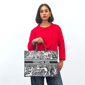 Imported Pu Leather with Canvas Length: 12.5 Inches. Width: 14 Inches. Signature Dior Toile De Jouy Pattern Spacious Interior for Everyday EssentialsSturdy Stylish Handles for Comfortable Carrying Iconic Christian Dior Logo...