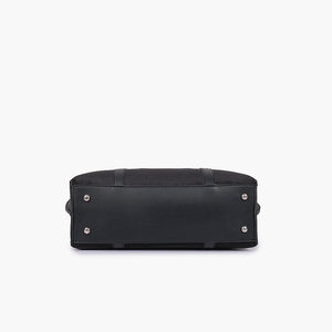 Width: 15 inches(top) and 13 inches(bottom) Height: 13 inches Depth: 4 inches One main zipper compartment. One front slide pocket. Long and short handles for either carrying it as a handbag or over the...