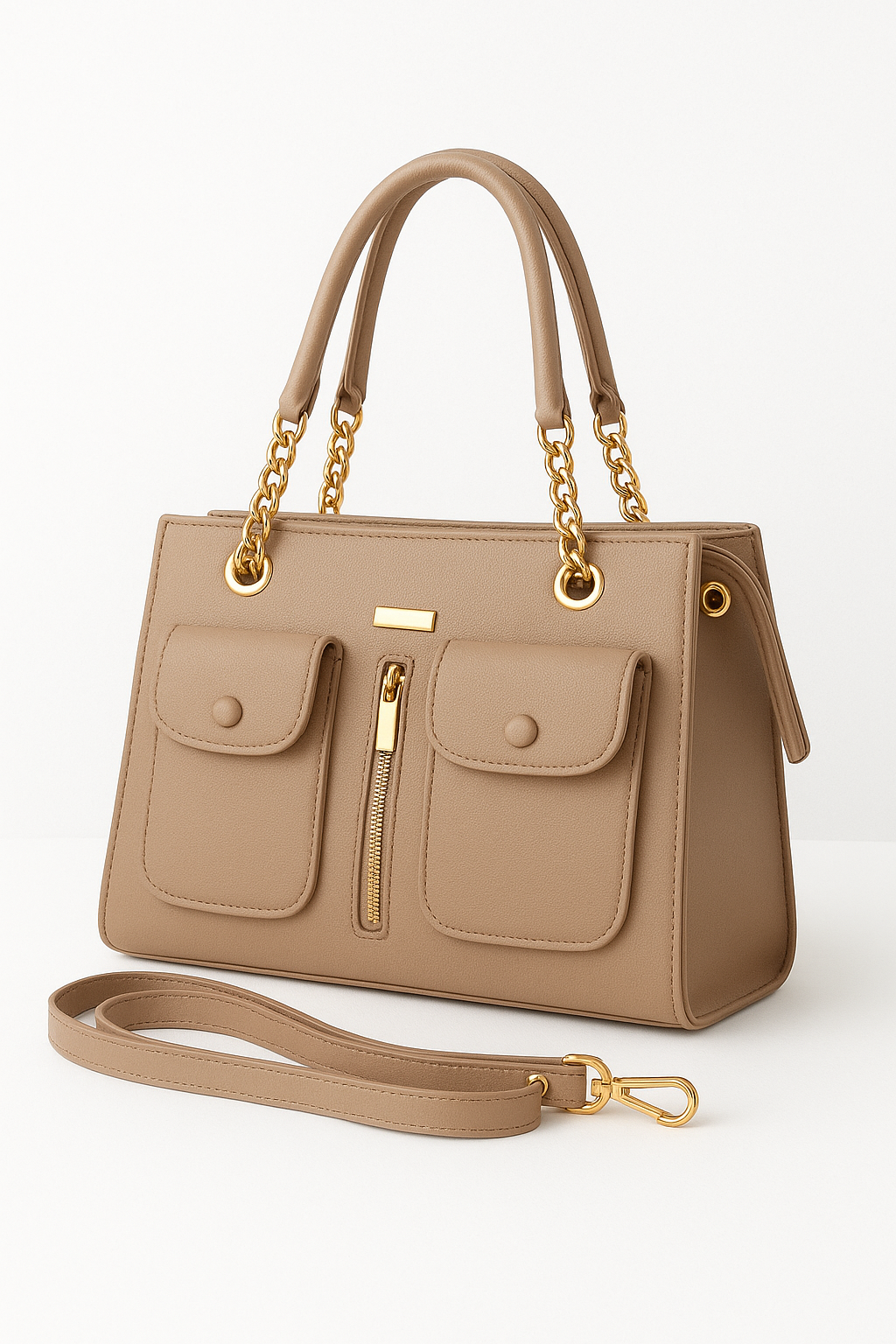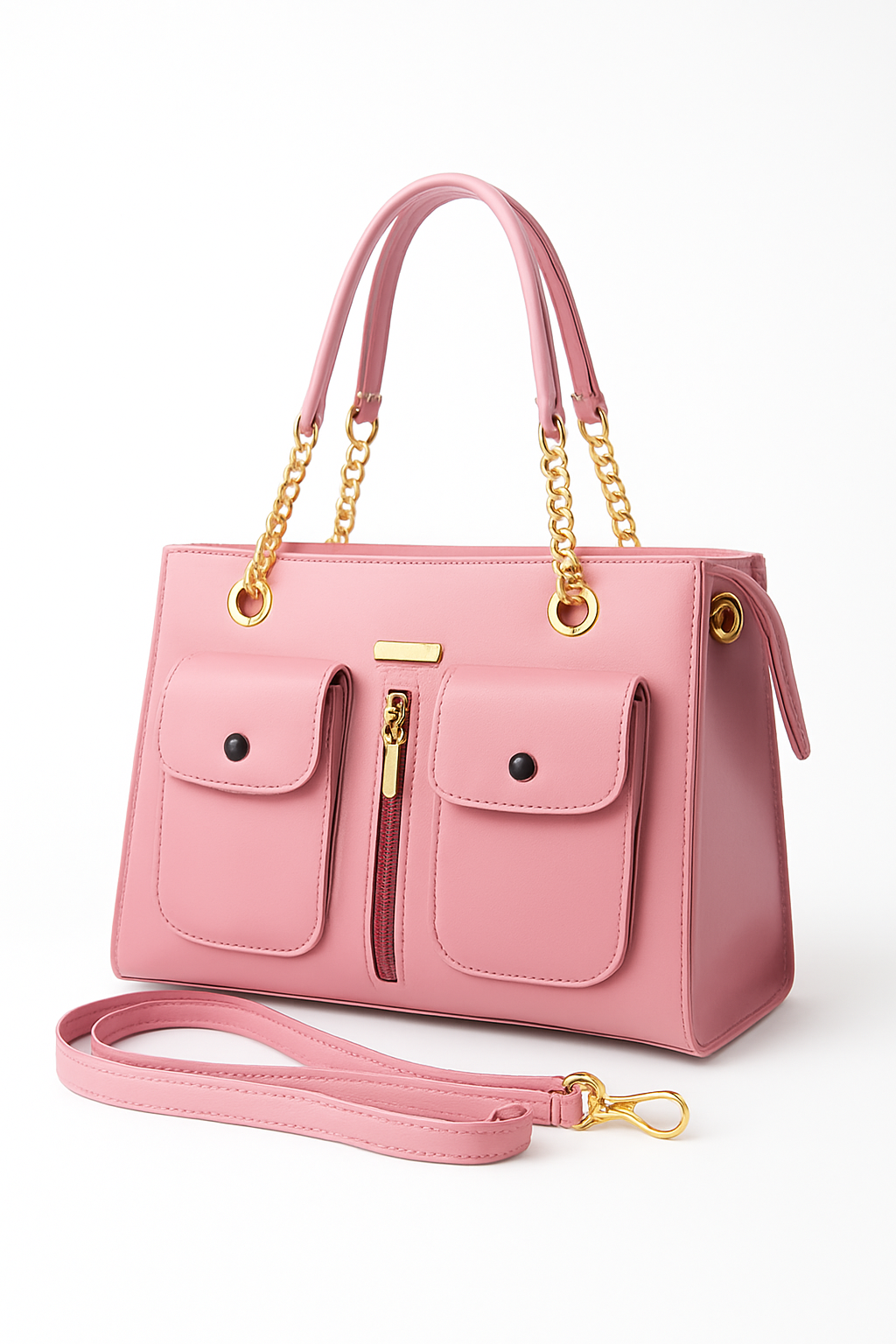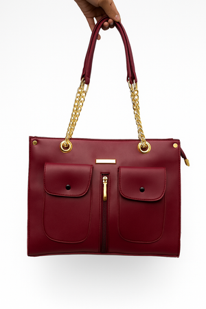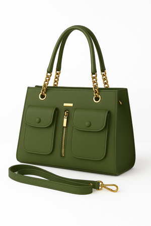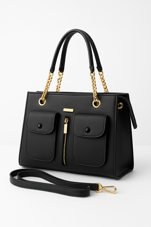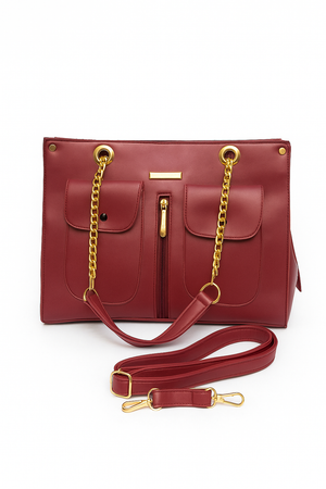 Single zipper with one compartments Handle with chain Two pockets on outside Height : 25 cm Width: 29 cm Depth: 11 cm Long Strap: 91 cm NOTE : There may be slight...