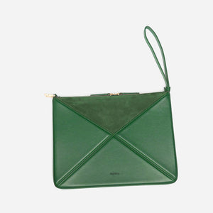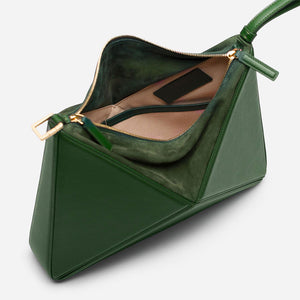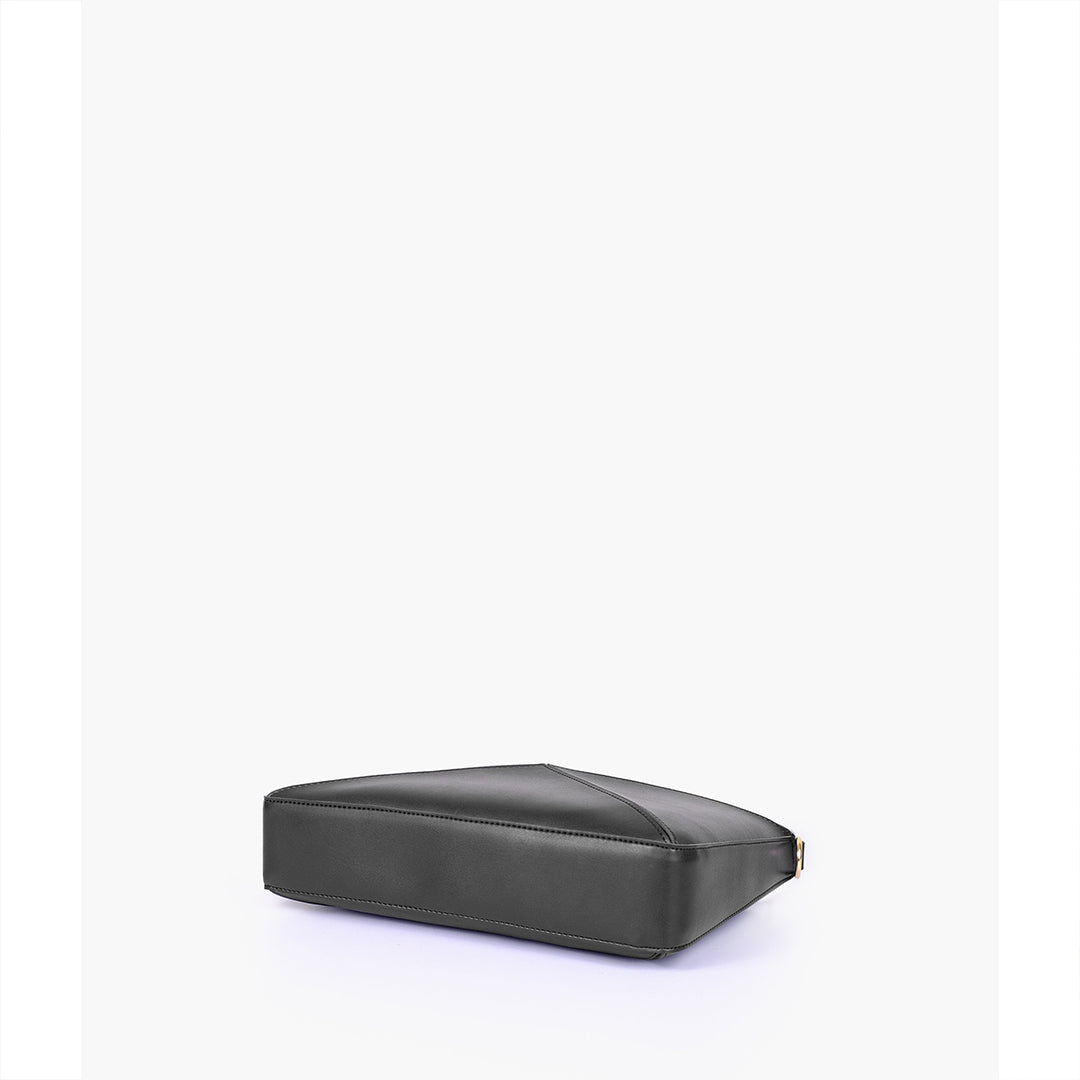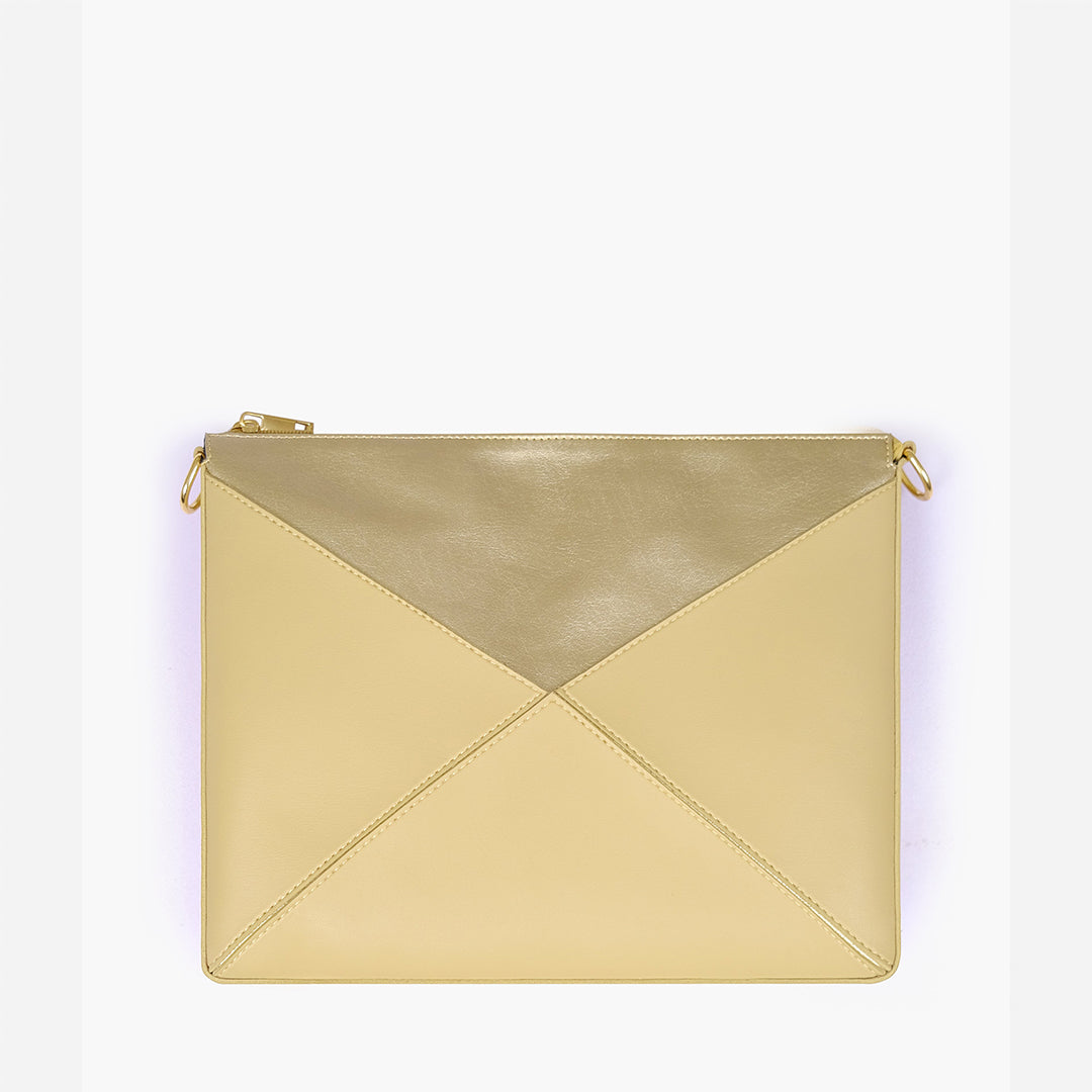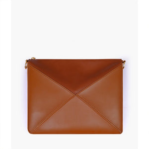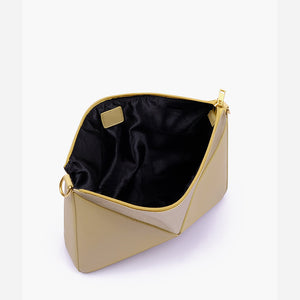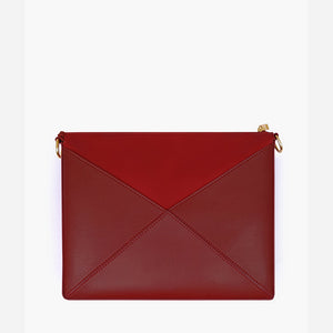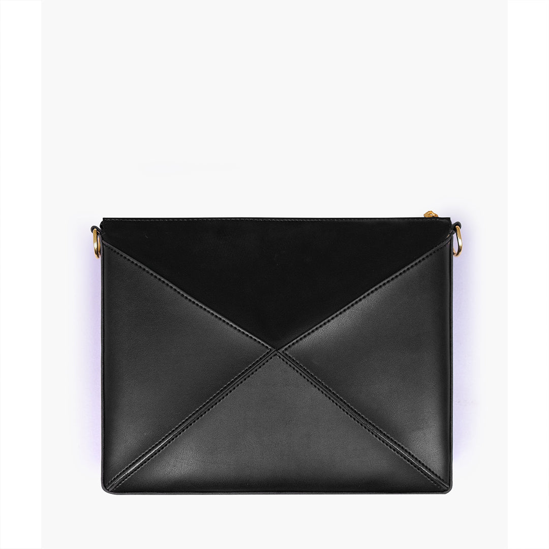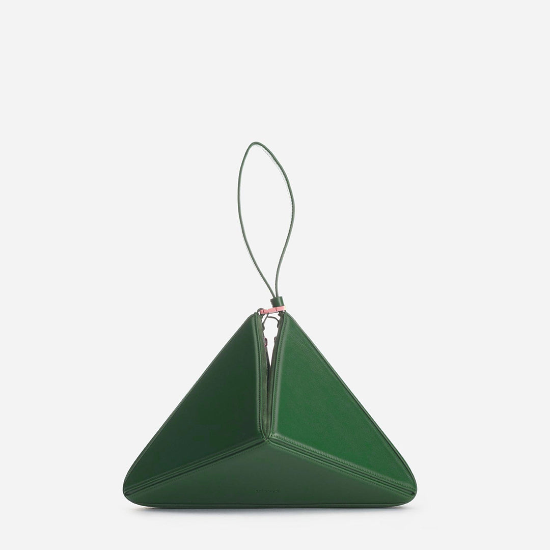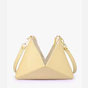 IMPORTED PU LEATHER Width: 11.5 inches Height: 9 inches Depth: 2.2 inches Eye-catching triangular design for a modern, bold statement. One main zipper compartment. Flexible panels allow for expansion, contraction, or...