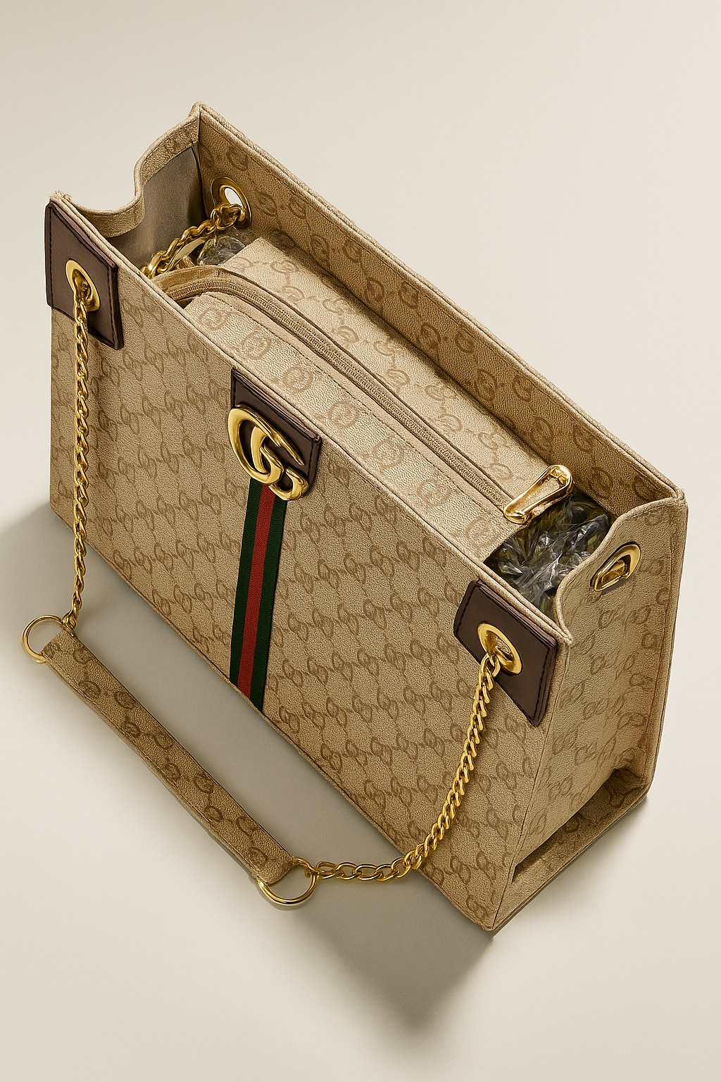 Imported pu leather Size 9.5 × 11.5 inches ONE MAIN ZIP CLOSER One inner pocket Top handle Long shoulder chain