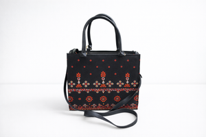 Style : Shoulder bag Color : Black Material : Premium quality faux leather & Canvas Measurements : Width : 14 " , Length : 11 " , Depth : 4." Compartments...