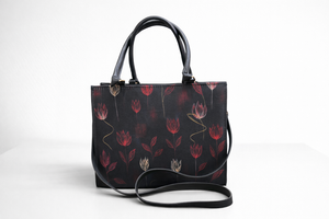 Style : Shoulder bag Color : Black Material : Premium quality faux leather & Canvas Measurements : Width : 14 " , Length : 11 " , Depth : 4." Compartments...