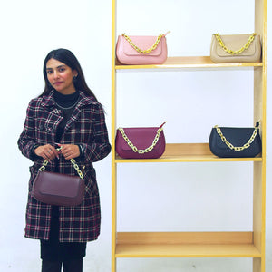 IMPORTED PU LEATHER LEATHER RIGHT SIZE 6 * 9.5 IMCHES ONE MAIN ZIP ONE INNER POCKET TOP CHAIN CARRY HANDLE LONG SHOULDER STRAP OF 48 INCHES AVAILABLE IN DIFFERENT COLORS